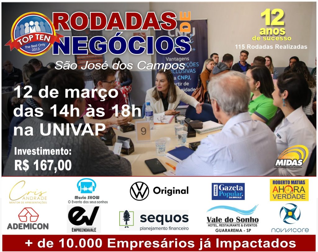 A Rodada de Negócios ACIT será realizada no endereço Rua Prof. Bernardino Querido, 799 – Vila São José – Taubaté – SP. Investimento R$ 127,00